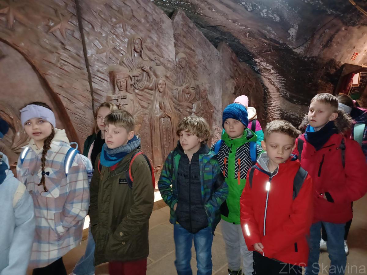 31 marca uczniowie klas 3A i 3B uczestniczyli w wycieczce do Kopalni Soli w Bochni najstarszej kopalni soli kamiennej w Polsce. Dowiedzieliśmy się, że od początku lat 90 XX w. nie wydobywa się w niej już soli. Swoją działalność kopalnia poprowadziła w kierunku rozwoju ruchu turystycznego i udostępniła najstarsze i najpiękniejsze wyrobiska. Pobyt w podziemiach kopalni był dla wszystkich niezwykłą atrakcją. Już sam zjazd do solnego, podziemnego miasta prawdziwą windą górniczą był wielkim przeżyciem. Podziemna trasa turystyczna wzbogacona jest o ekspozycję multimedialną, która na tle wydarzeń historycznych, w ciekawy prezentuje sposób rozwój górnictwa, zagrożenia, walkę z żywiołami oraz piękno podziemnej natury. Czas wolny dzieci mogły spędzić na placu zabaw i boisku do gry w piłkę nożną i koszykówkę, które mieści się również w podziemiach kopalni. Dodatkowym atutem pobytu w kopalni było przebywanie w czystym powietrzu nasyconym mikroelementami.